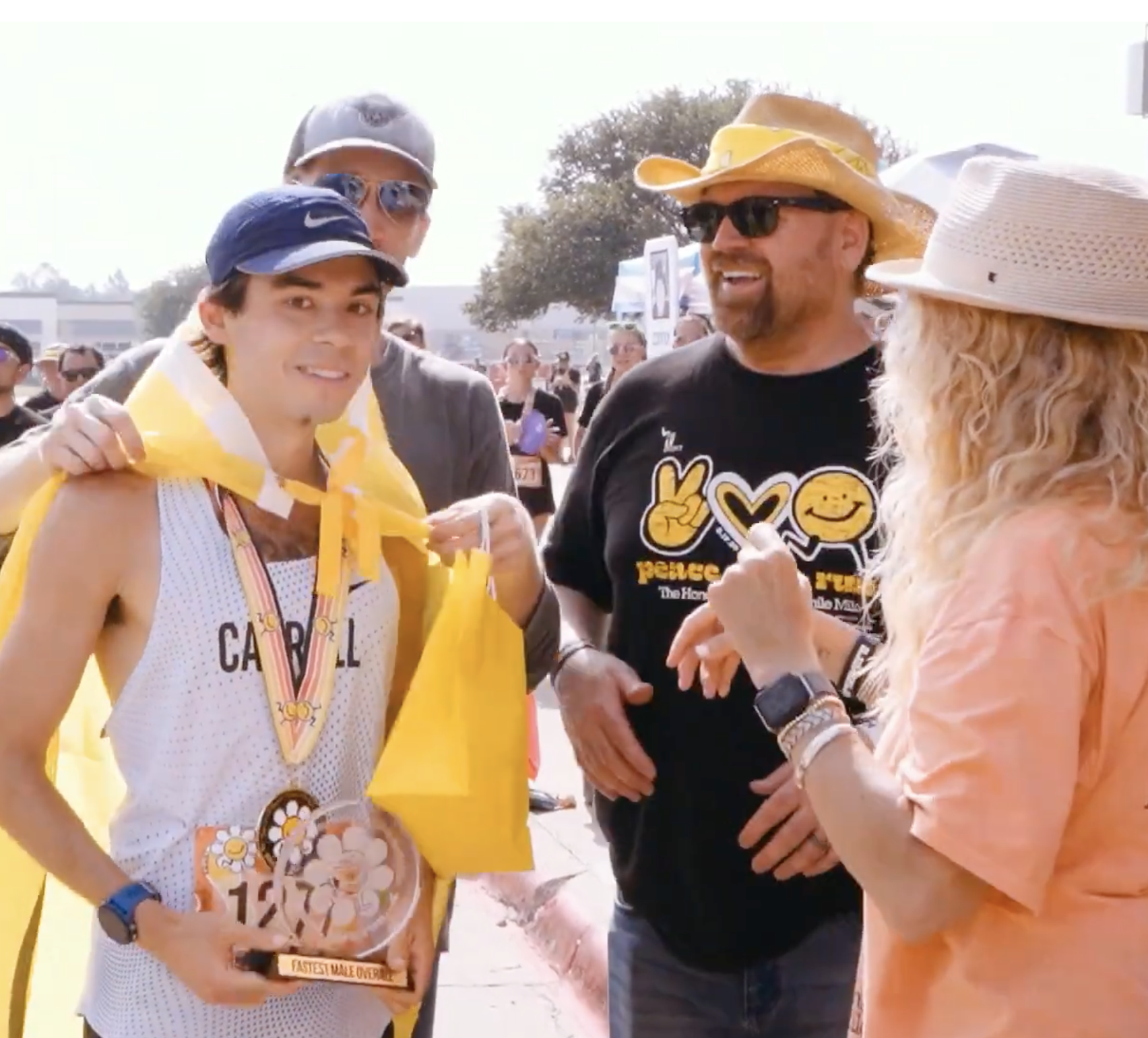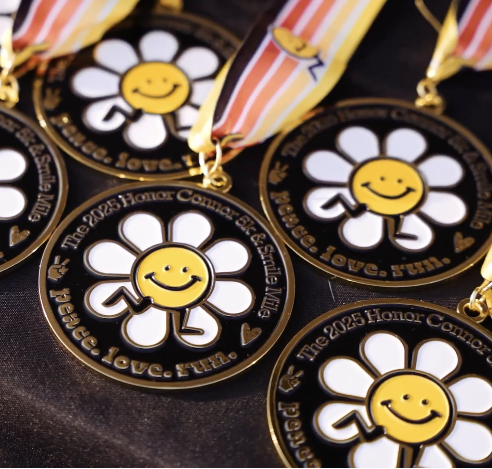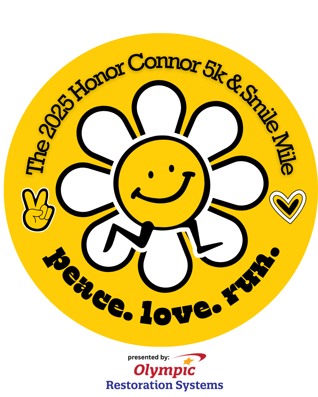 Overall winners (fastest male & female), Masters winners (40+) and Grand Masters winners (50+) receive a winners medal, trophy, and the official Honor Connor Smile Flag. Age group winners (three deep M/F) receive a 1st/2nd/3rd place winners medal. Age groups are: 0-8, 9-11, 12-14, 15-19, 20-24, 25-29, 30-34, 35-39, 40-44, 45-49, 50-54, 55-59, 60-64, 65-69, 70-74, 75-79, 80+.